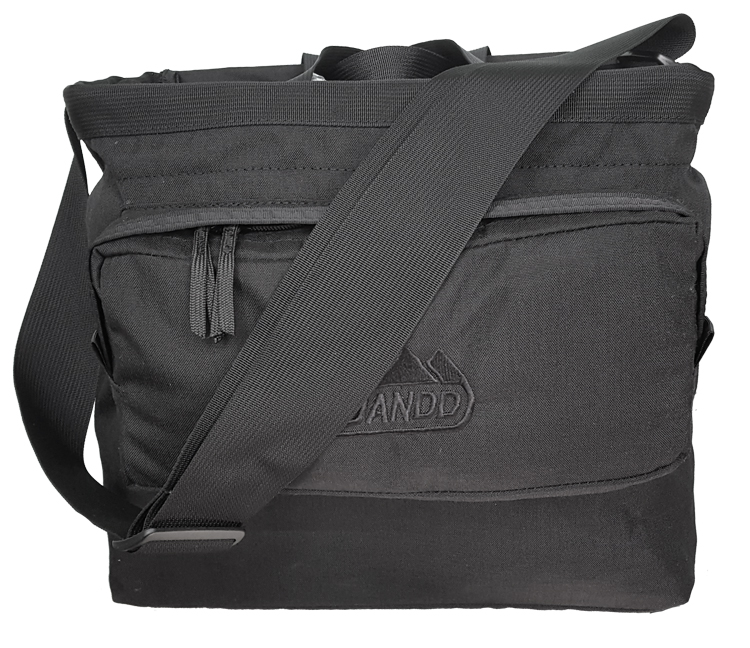 When not in use the bag can be folded up and secured out of your way by a pair of snaps on webbing tails. When you are ready to carry a load, be it groceries or briefcase, simply pop the snaps, attach the webbing tails to the snap heads on the back of the frame sheet to keep them out of your spokes, and load up.